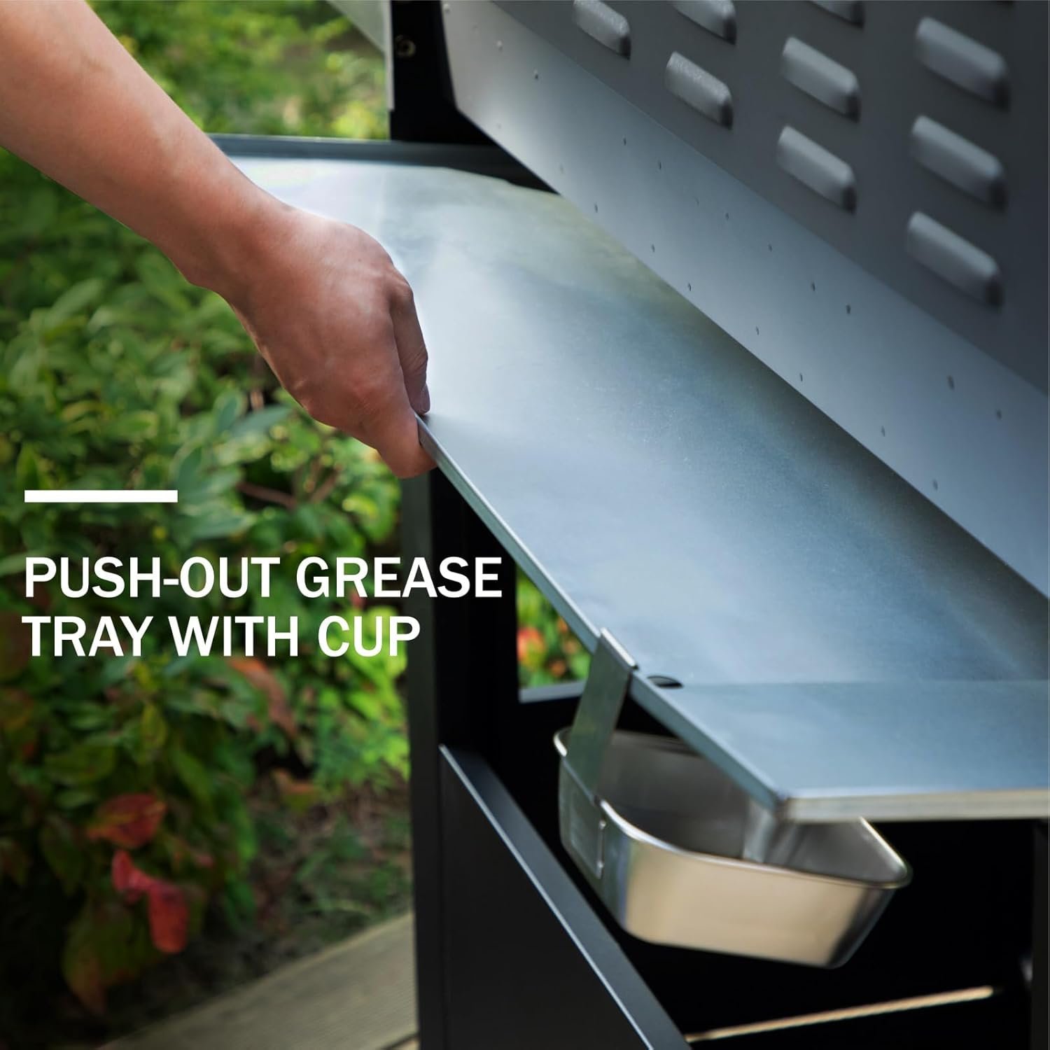 𝐄𝐚𝐬𝐲 𝐭𝐨 𝐂𝐥𝐞𝐚𝐧: The full-size grease tray slides out smoothly, making it a breeze to deal with grease and drippings while you’re grilling. Plus, the handy cup lets you easily get rid of the collected grease, keeping the post-grill cleanup hassle-free. This design also ensures your food tastes its best by preventing excessive grease from affecting the flavor
