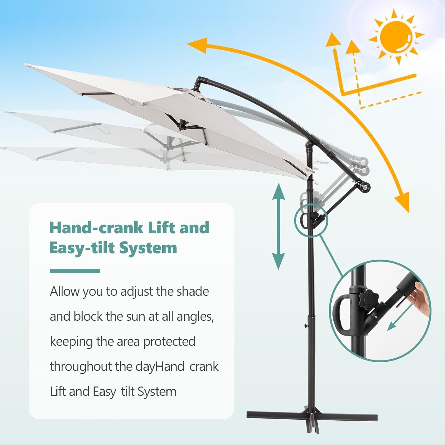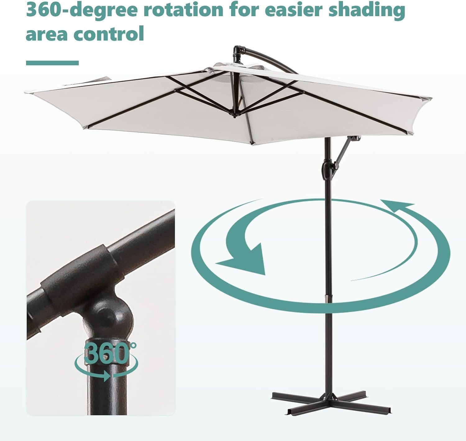 SUNBURY 9FT/10FT Patio Umbrella w Easy Tilt Adjustment, Round Offset Hanging Patio Umbrella w 360 Rotation, Cantilever Patio Umbrellas Polyester Shade for Backyard, Poolside, Lawn, Courtyard, Deck