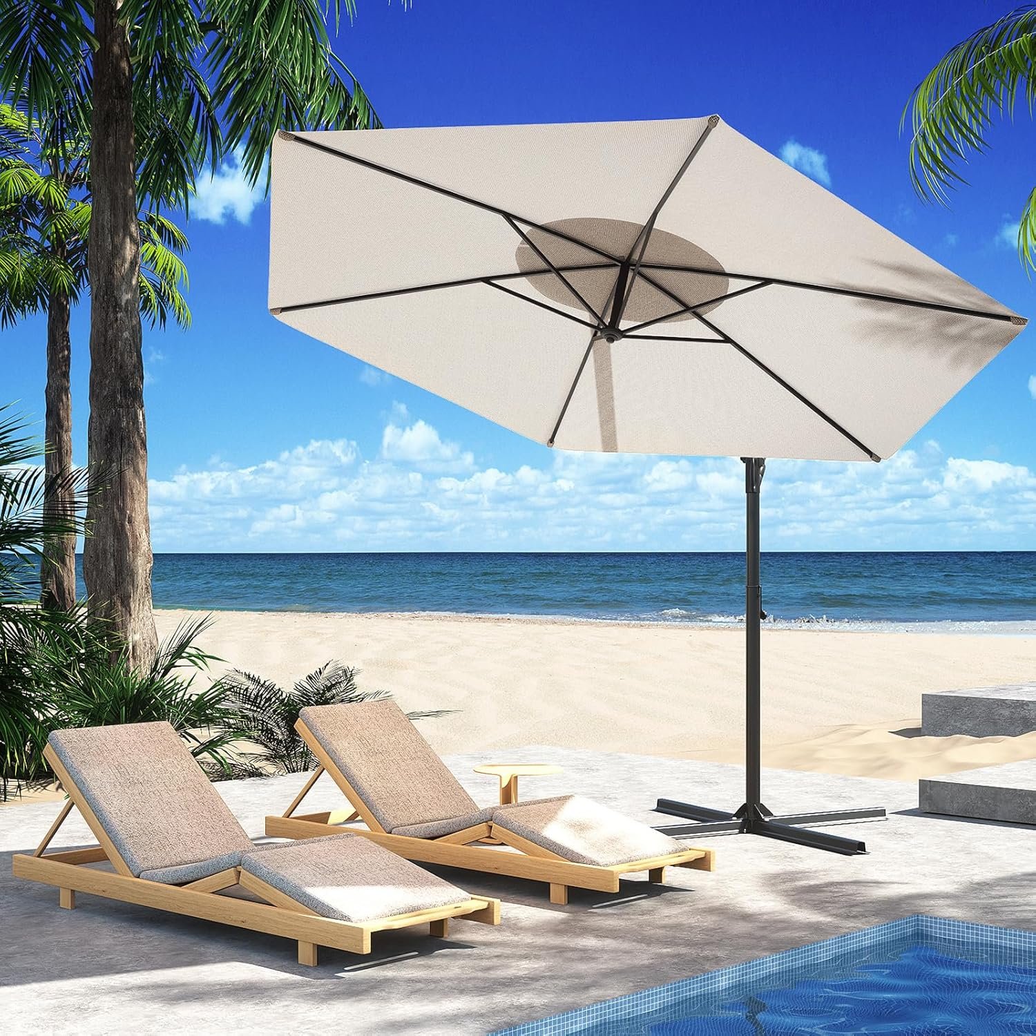 6 reviews for SUNBURY 9FT/10FT Patio Umbrella w Easy Tilt Adjustment, Round Offset Hanging Patio Umbrella w 360 Rotation, Cantilever Patio Umbrellas Polyester Shade for Backyard, Poolside, Lawn, Courtyard, Deck