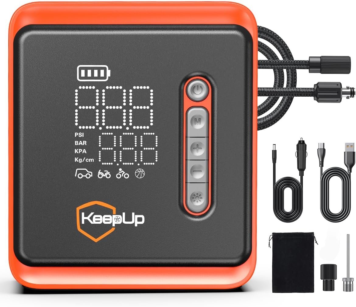 5 Preset Modes Multi-functional Tire Air Compressor: Features 5 preset modes for for cars, motorcycles, bikes, and sports balls. Customizable pressure range from 2-150 PSI.Compact and user-friendly design for use at home, on the road, or during trips.