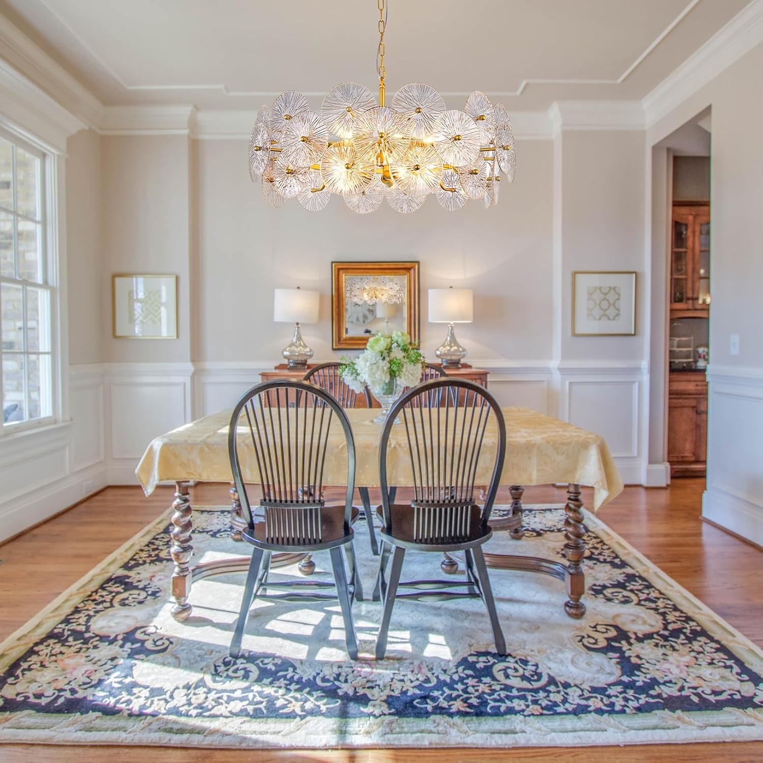 8 reviews for TOCHIC Modern Glass Chandelier 32.67″, 3 Tiers Large Gold Ceiling Light Fixtures for Dining Room, Farmhouse Foyer Chandeliers Round Pendant Hanging Light for Living Room, Kitchen Island, Bedroom
