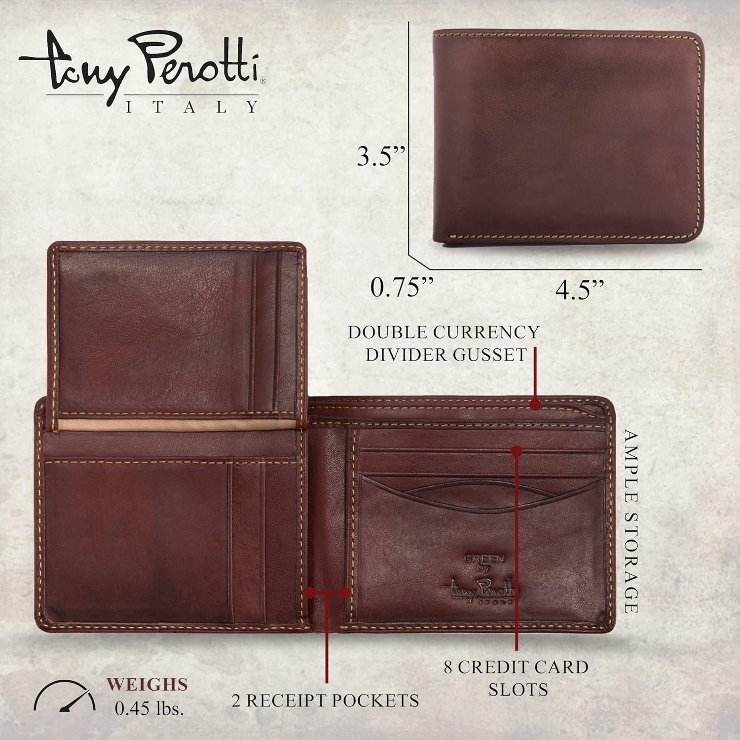 Tony Perotti Men’s Italian Leather Bifold Wallet With Card Holders, Pockets, ID Window – Eco-Friendly Vegetable-Tanned Full Grain Leather Wallet