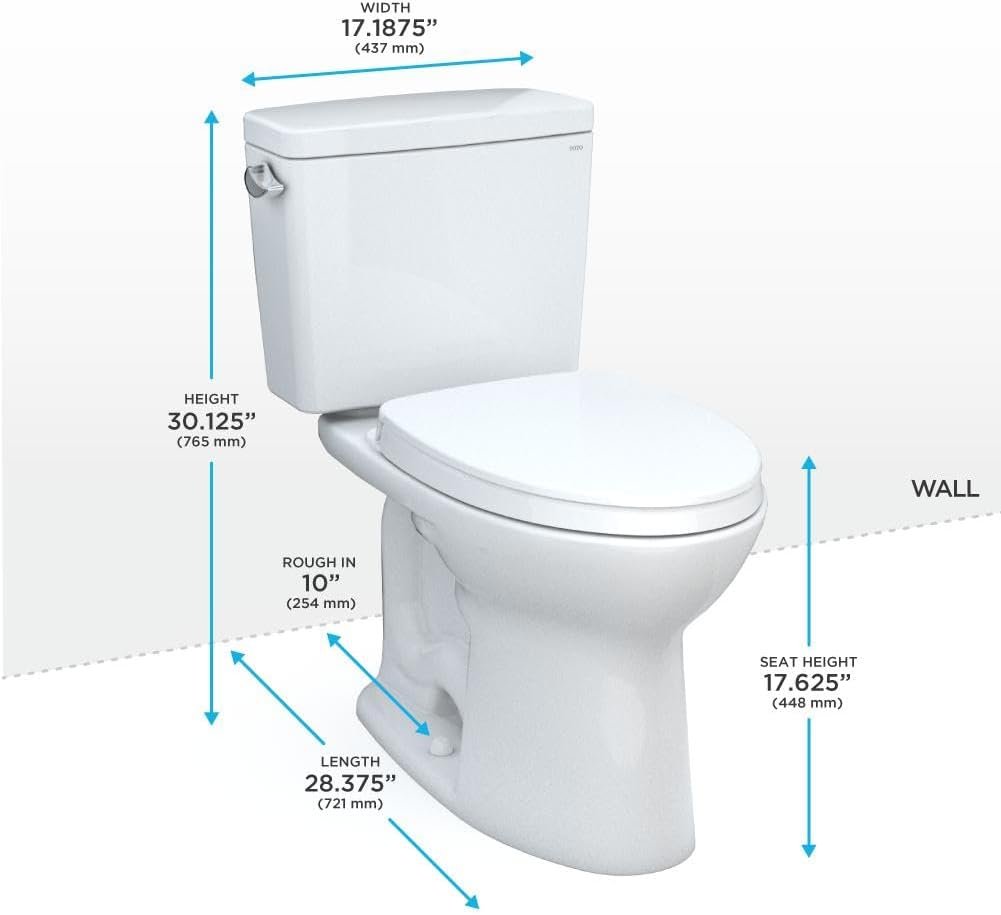 8 reviews for TOTO® Drake® Two-Piece Elongated 1.28 GPF Universal Height TORNADO FLUSH ® Toilet with 10 Inch Rough-In, CEFIONTECT®, and SoftClose® Seat, WASHLET®+ Ready, Cotton White – MS776124CEFG.10#01