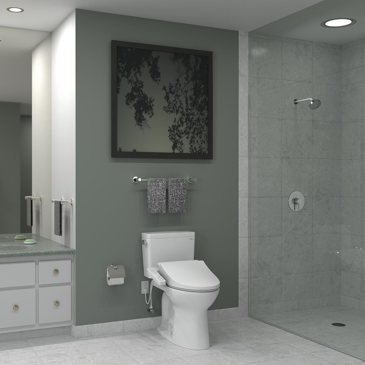 The TOTO WASHLET A2 Elongated Electronic Bidet Toilet Seat delivers ecology-minded luxury with a streamlined design. Unlike traditional toilet paper that can often be rough and ineffective, the WASHLET quickly provides comfortable warm water cleansing at the touch of a button. The WASHLET A2 is fully automated, featuring a soft rear spray, rear cleanse, and front cleanse with the option of an oscillating stream. The control settings are located on a conveniently attached arm control panel. The spray wand is self-cleaning, intuitively cleaning itself before and after each use. The WASHLET features a heated SoftClose® seat that offers three temperature settings. Adjustable water temperature and water pressure with three temperature settings and five pressure settings. Using a WASHLET reduces the need for toilet paper, saving trees and water used to manufacture each roll. Spa-level effortlessness and true accessibility is delivered, providing an exhilarating and incredibly easy-to-use experience for everyone! Whether you’re looking to enjoy an additional pampered touch or looking to enjoy more independence in your regular bathroom routine, WASHLET provides next-level performance to satisfy all your needs.