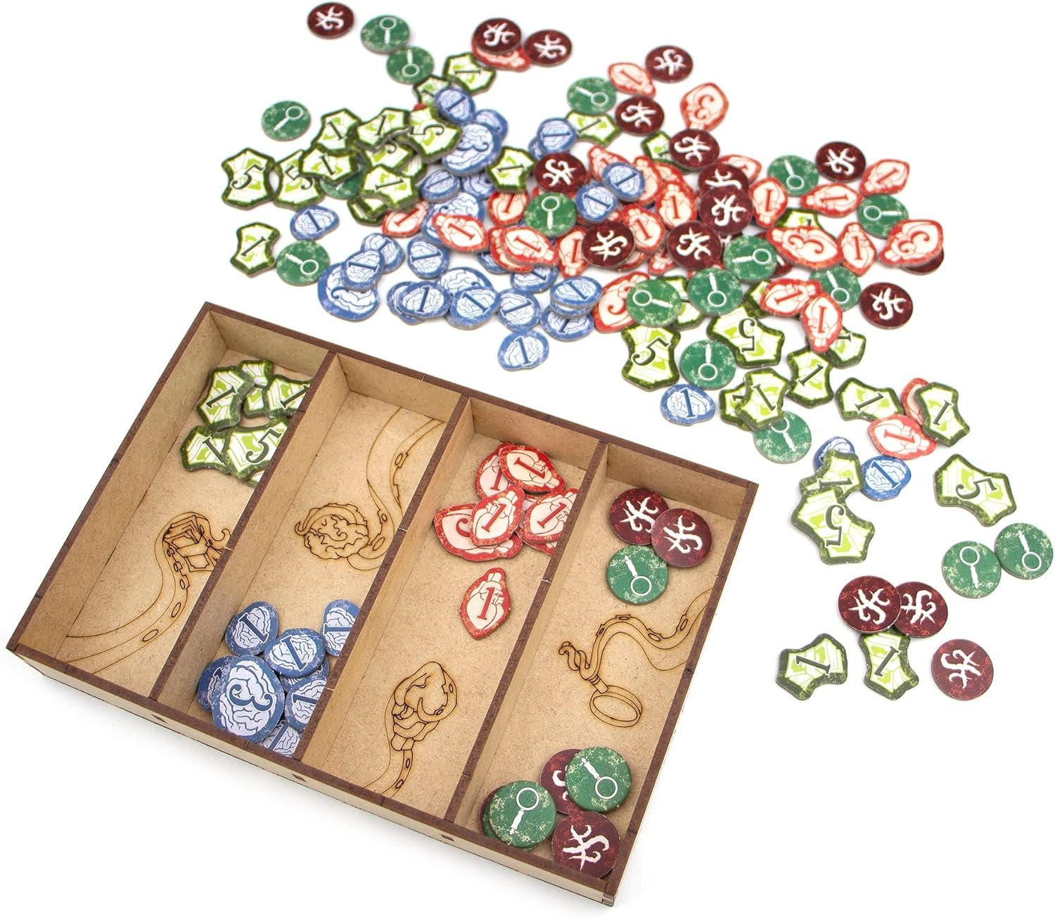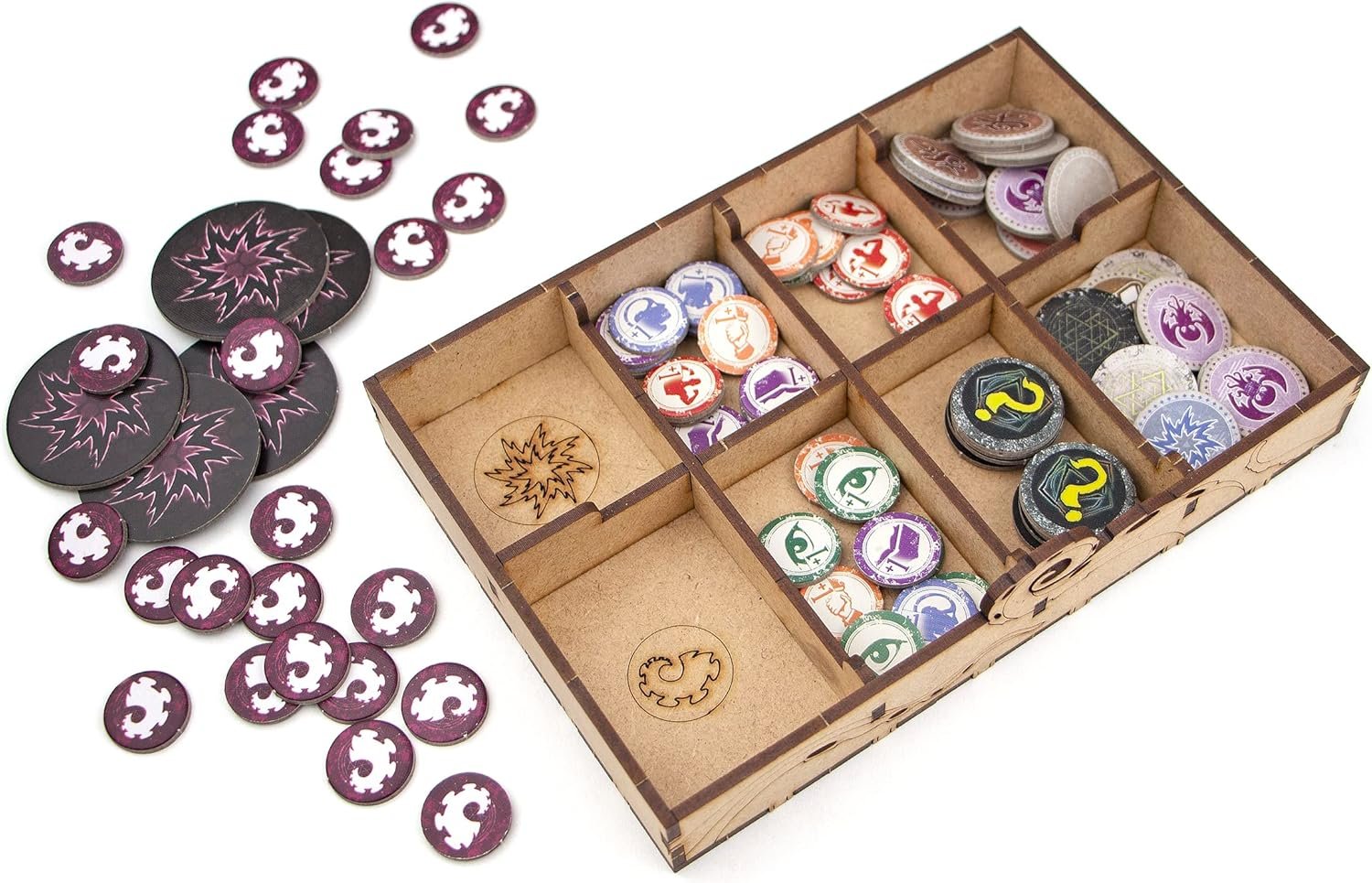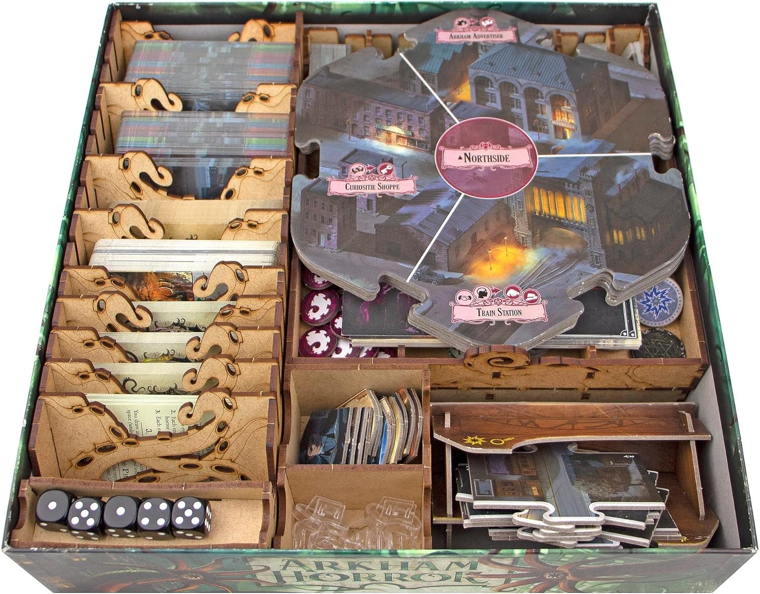 Solid board game organizer for Arkham Horror 3rd Edition base game. Holds the components in storage easy to use during the game. Our game box storage solution is designed to make games more immersive