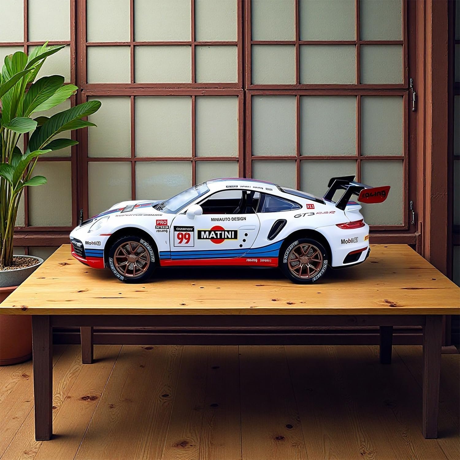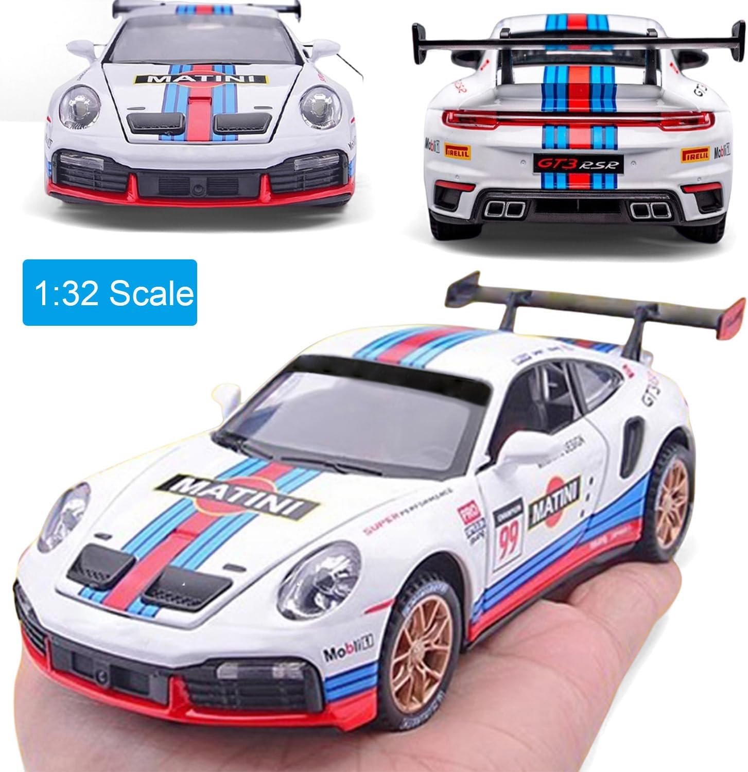 Toy Cars for 911 GT3 RS RSR Turbo S, 1:32 Alloy Diecast Model Cars,Pull Back Car Toy with Light and Sound Gift Sports Race Car for Boys Age 3+ Gifts White