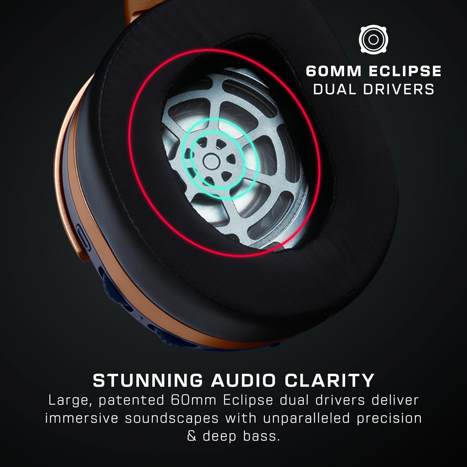 The largest in their class, our patented 60mm Eclipse dual drivers deliver immersive soundscapes with unparalleled precision and deep bass. The dual drivers are designed with a distinct woofer and tweeter to separate low and high frequencies for vastly improved audio detail over conventional drivers.