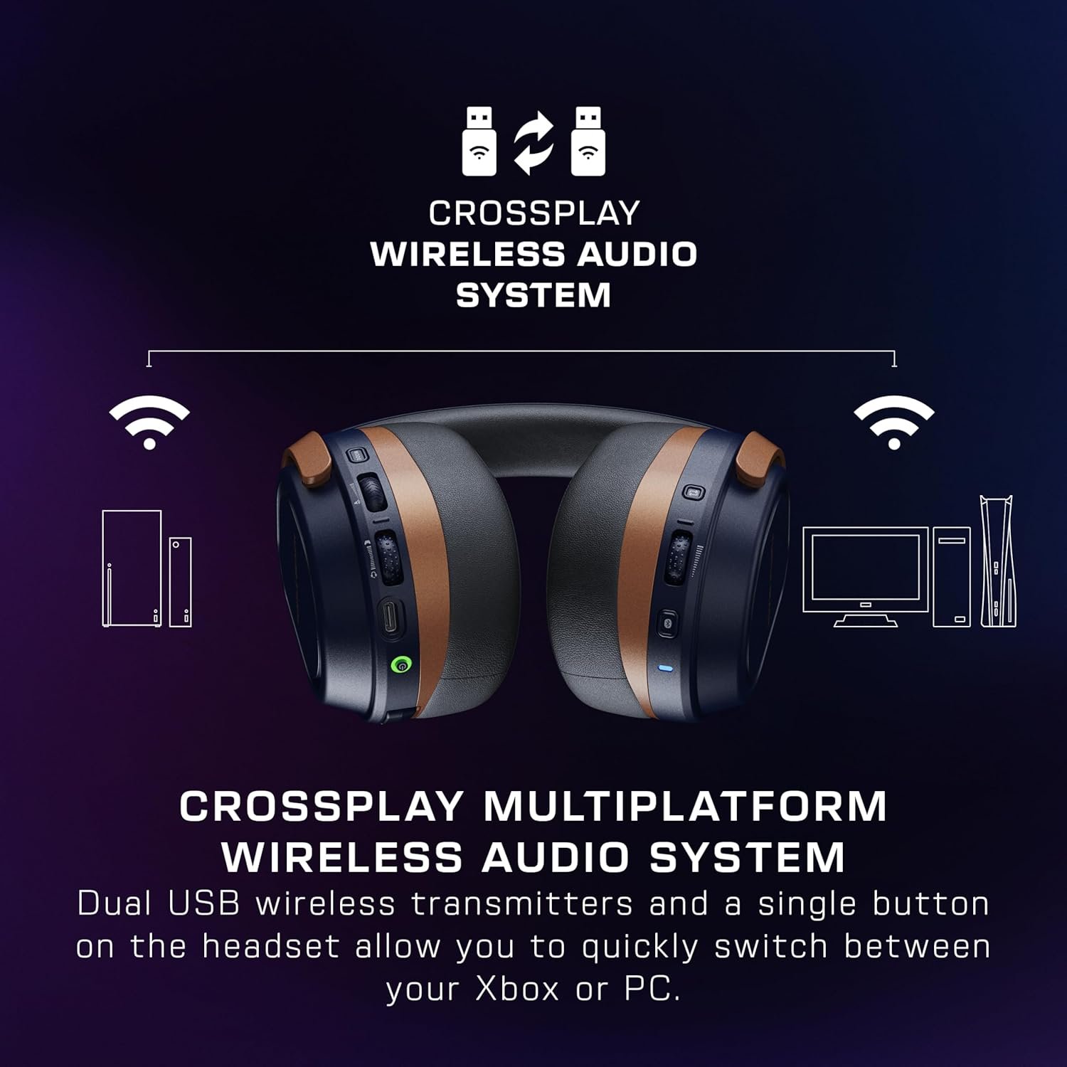 The Turtle Beach Stealth 700 Gen 3 wireless multiplatform gaming headset officially licensed for Xbox Series X|S & Xbox One, and works great with PS5 & PS4, Windows PCs, Steam Deck and mobile is redesigned and feature-packed for a 3rd generation of premium gaming prowess. All-new, and exclusive for the Stealth 700 Gen 3, the CrossPlay Wireless Audio System includes two USB wireless transmitters, and using the CrossPlay button on the headset, you can easily switch between your favorite console and PC without having to move transmitters or connect cables. Plus, simultaneous Bluetooth 5.2 lets you connect directly to mobile devices while playing on console or PC so you can chat with friends on Discord or listen to your favorite music from your phone while still hearing game audio on your console or PC.
