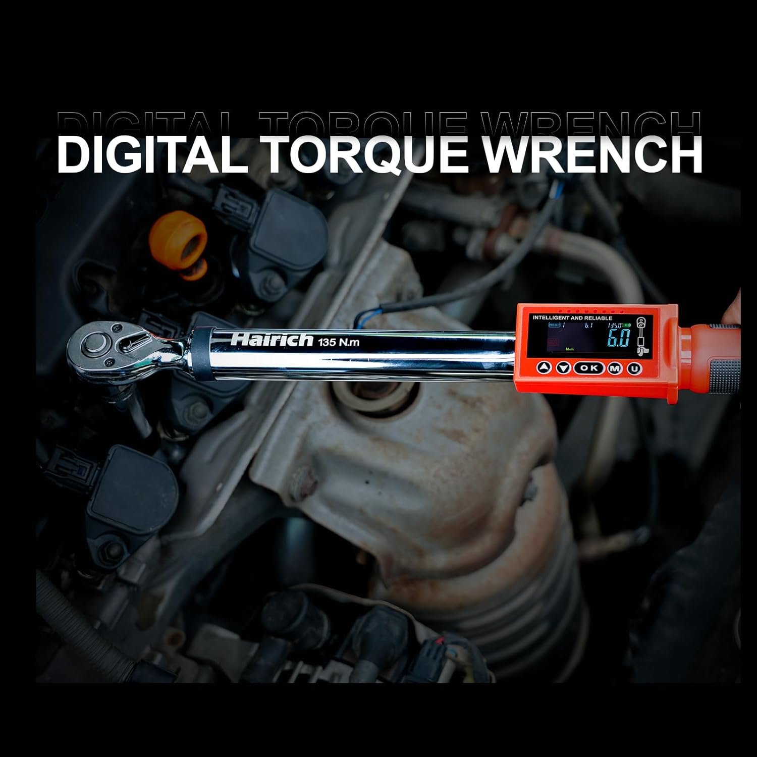 Torque Range&Accuracy: Hairich upgrade Digital torque wrench car set range from 5-100FT-LB/0-135N.M, With an accuracy of ±2%, each digital torque wrench comes with a calibration certificate, ensuring precise torque application to fasteners on vehicles or equipment, avoiding component damage.