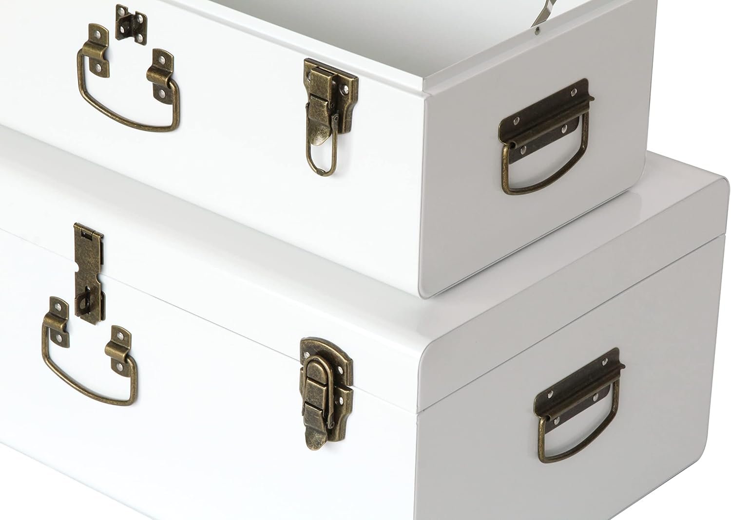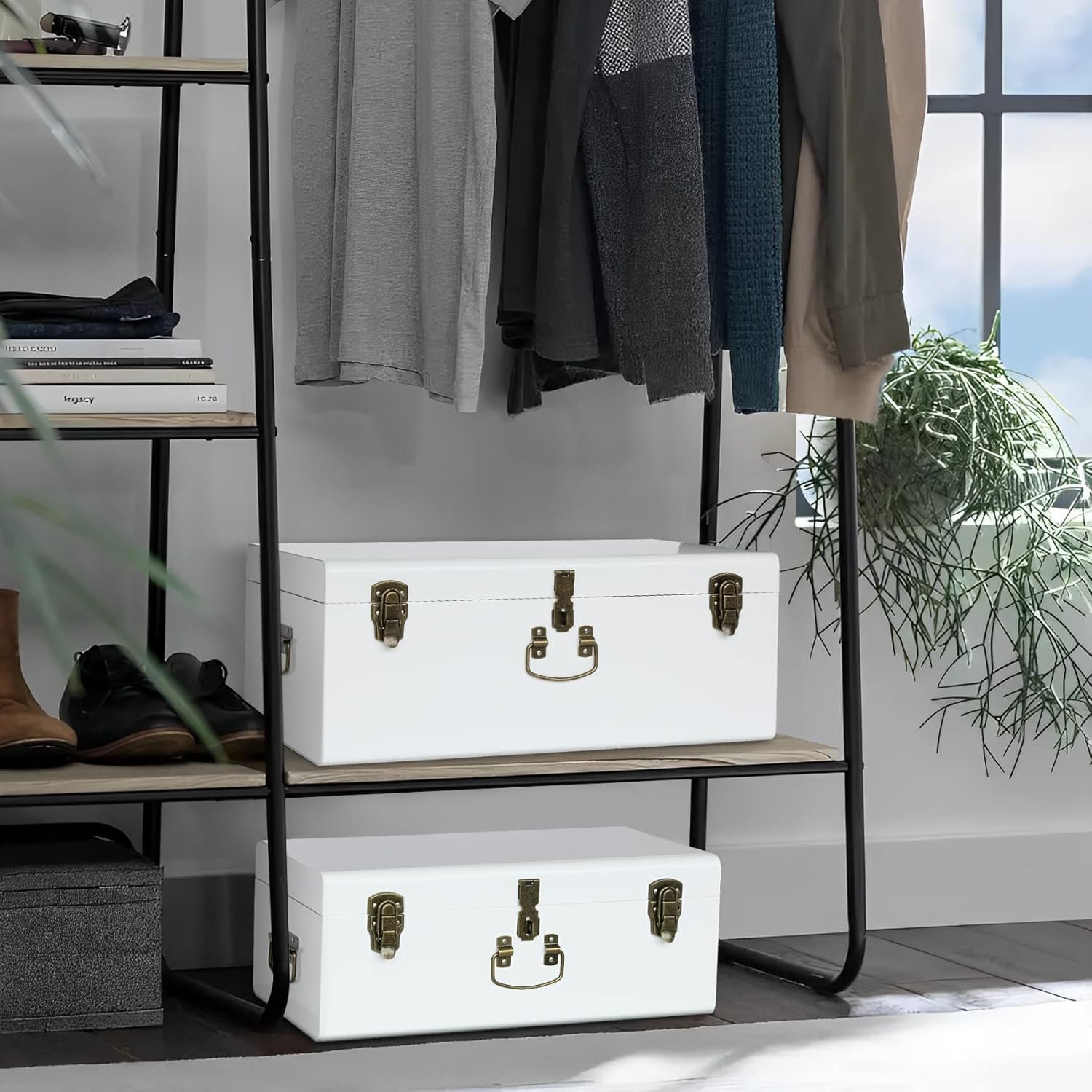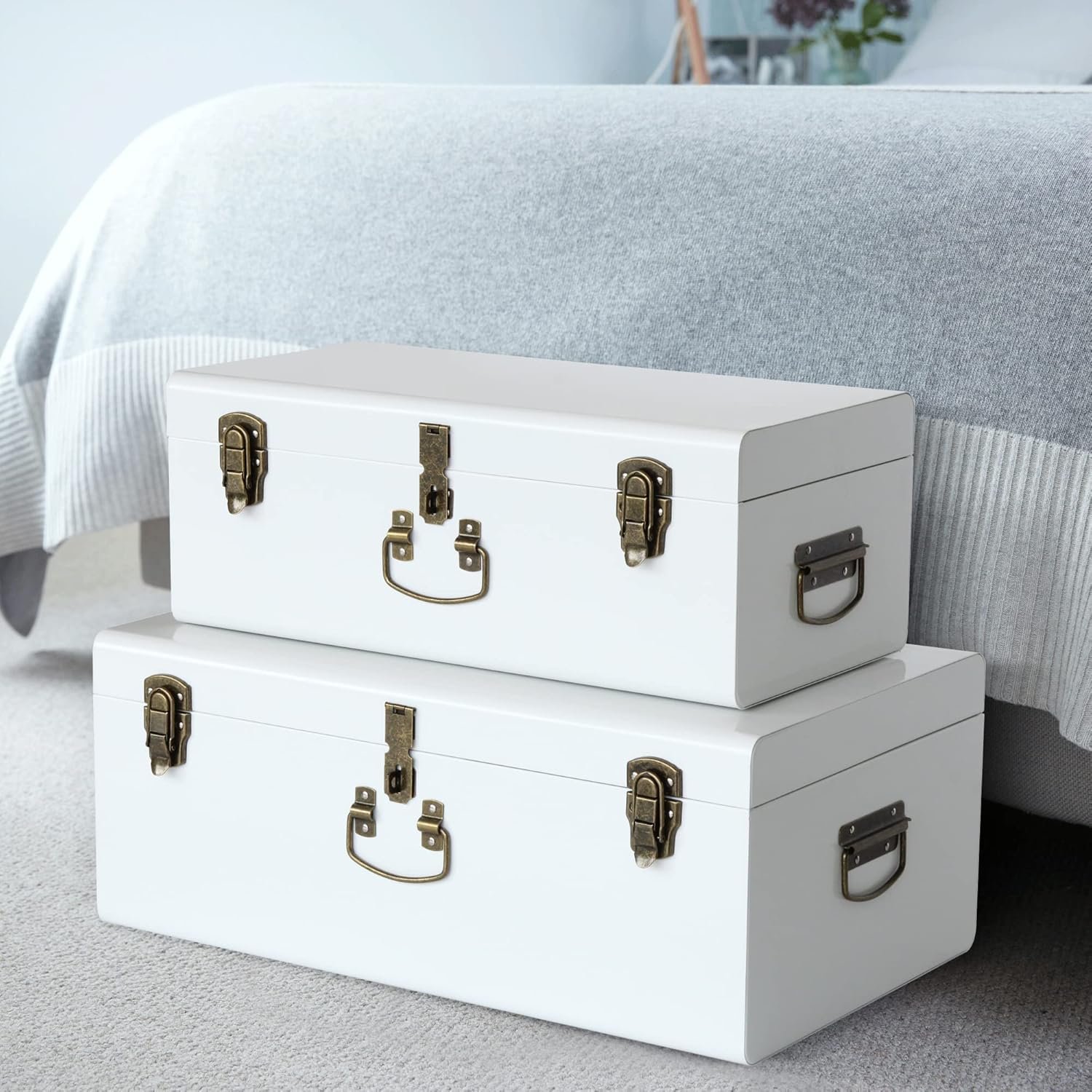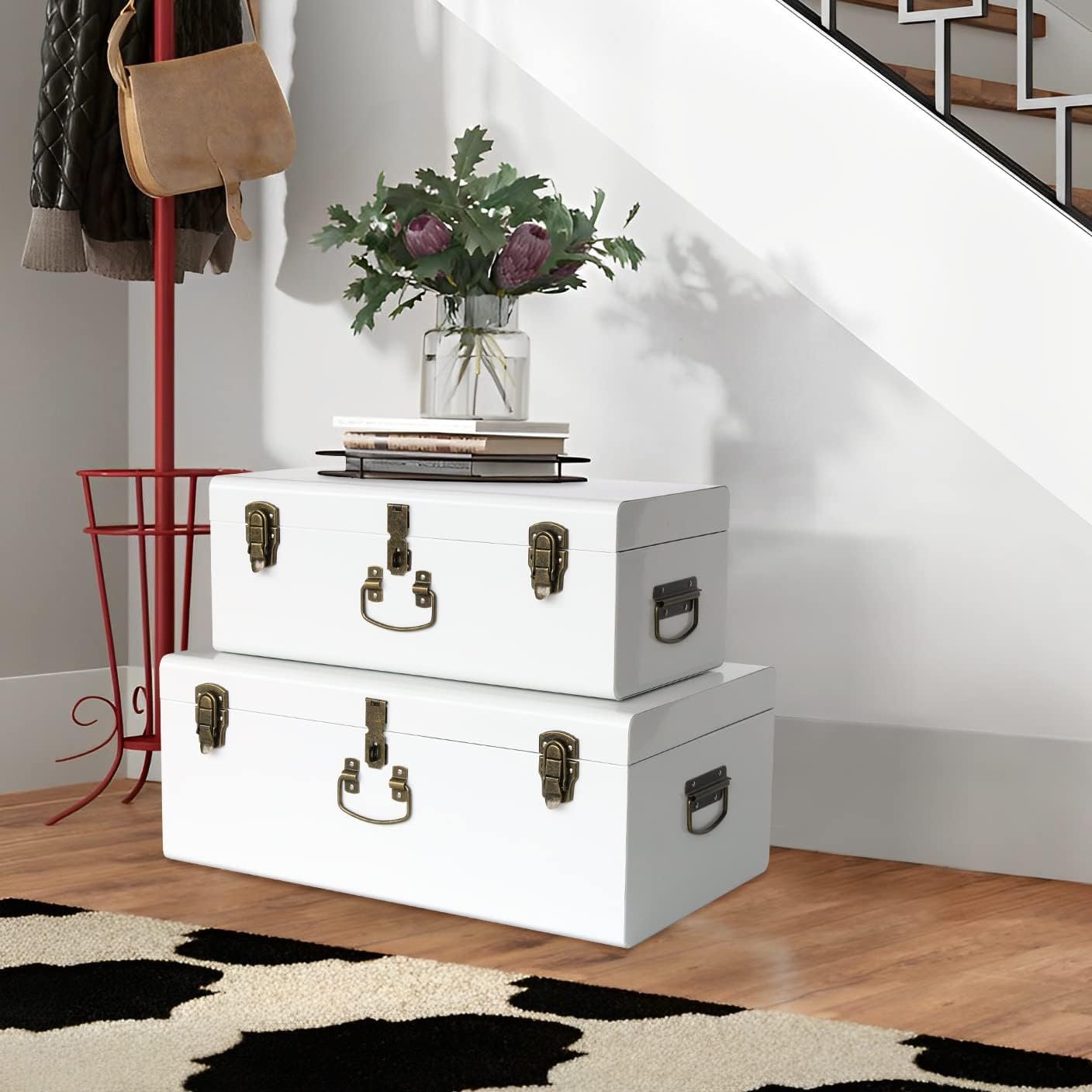 8 reviews for Vixdonos Decorative Metal Box Storage Trunks Set of 2 College Dorm Chest with Handle (White with Bronze Latches)