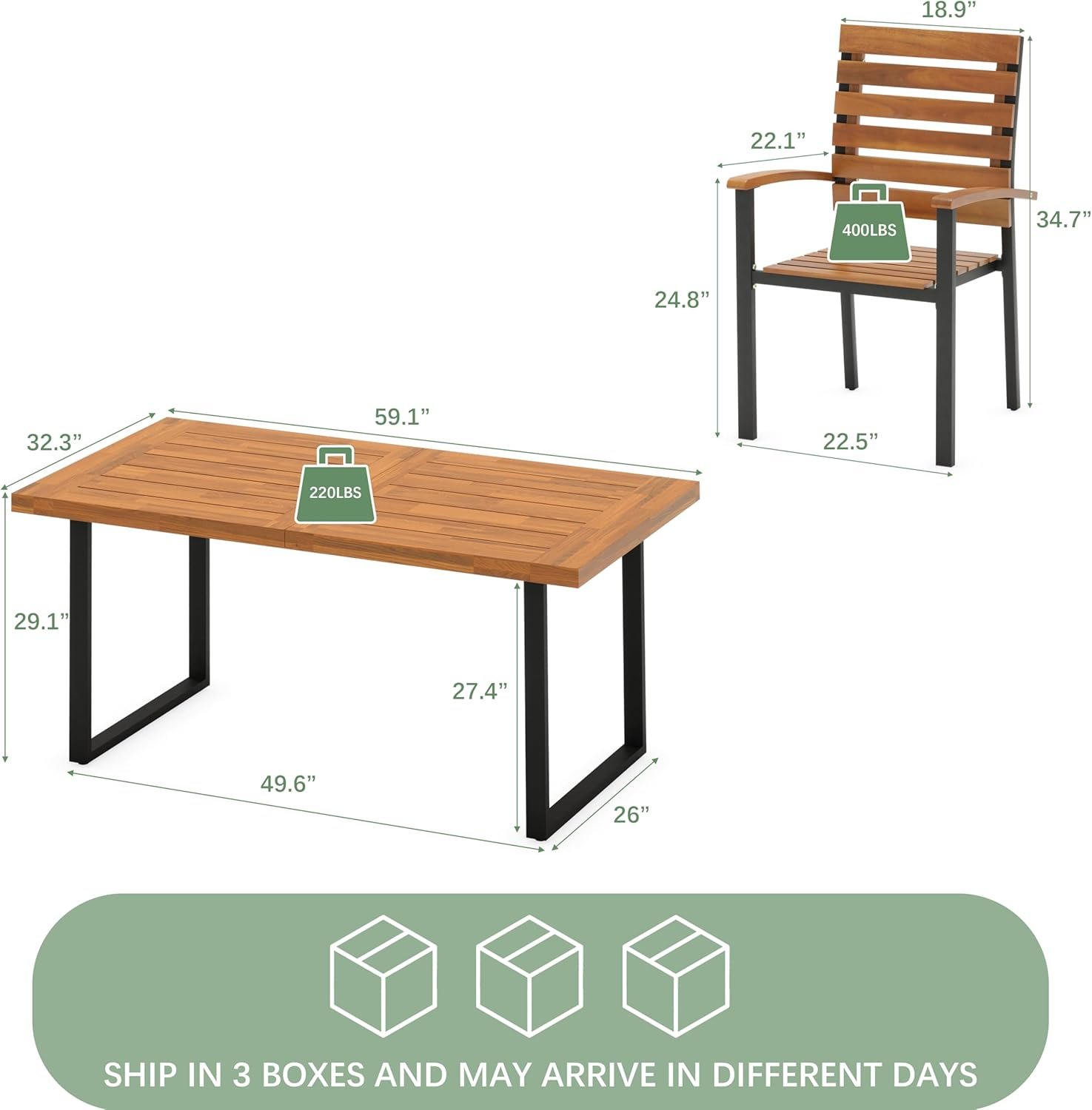 3 reviews for WiberWi 7 Piece Outdoor Dining Set for 6, Acacia Wood 59.1″ Patio Table and Chairs Set with Metal Frame, Patio Dining Furniture Set for Garden, Balcony, Backyard, Poolside, Brown & Black