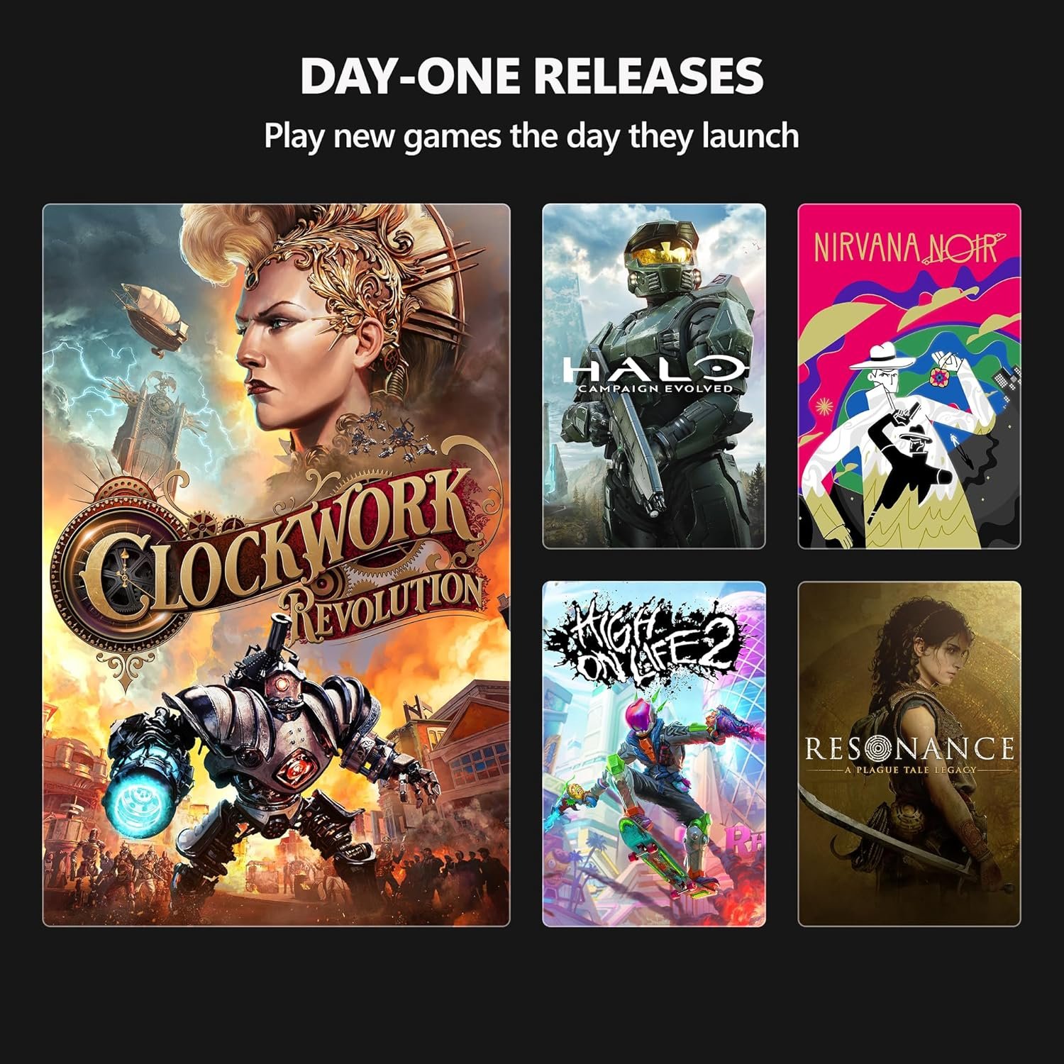 NEW GAMES ON DAY ONE: Enjoy new games on day one from Xbox Game Studios, Bethesda Softworks, Activision Blizzard, and more. Play Forza Horizon 6, High on Life 2, and Halo: Campaign Evolved the same day they launch.