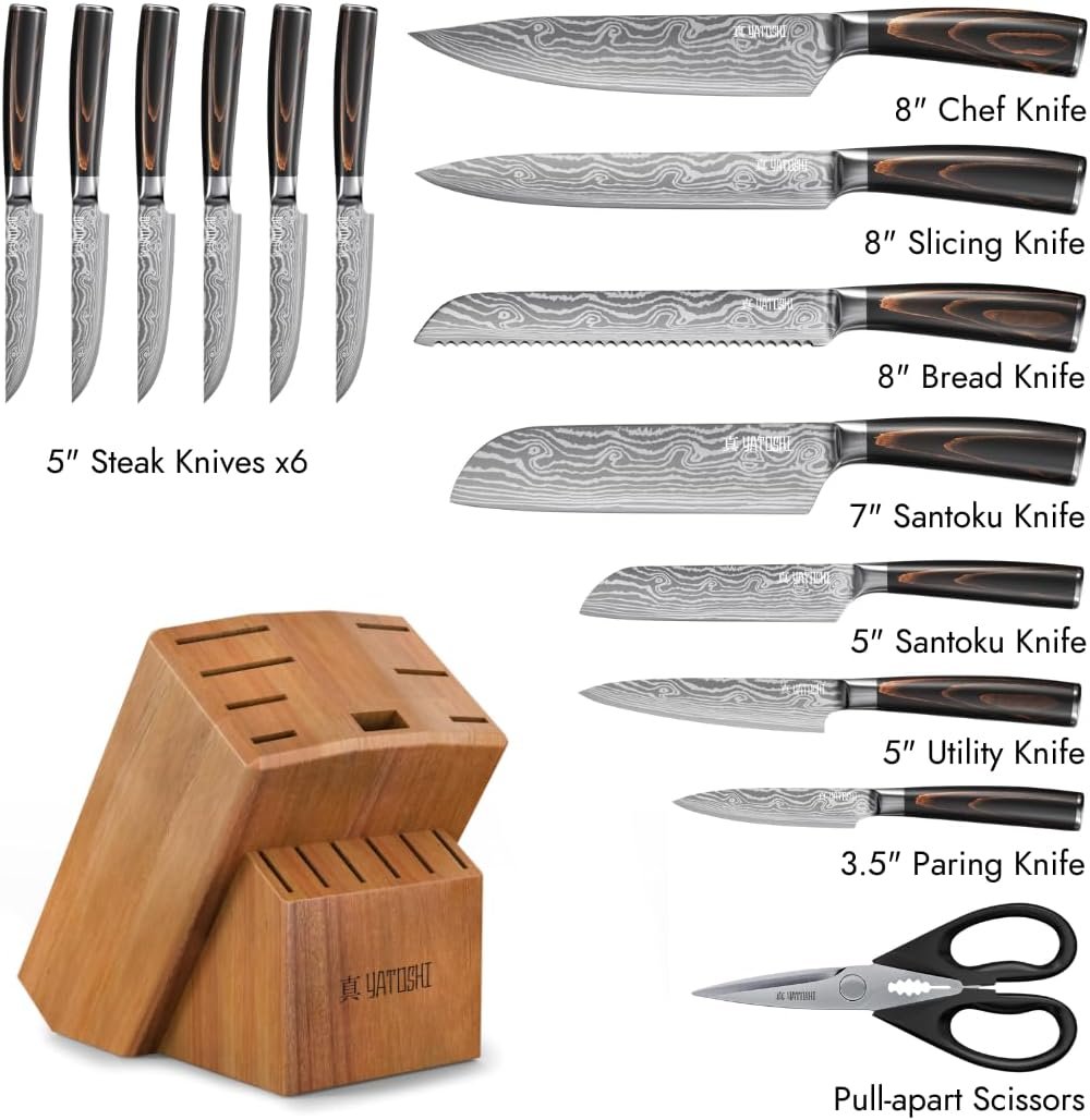 Yatoshi Professional Kitchen Knife Set, 15 Pieces, High Carbon Stainless Steel, Ergonomic Handle
