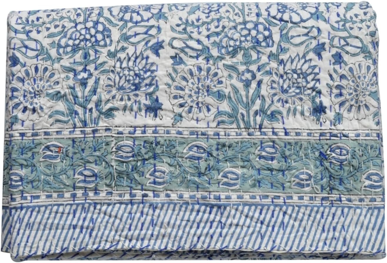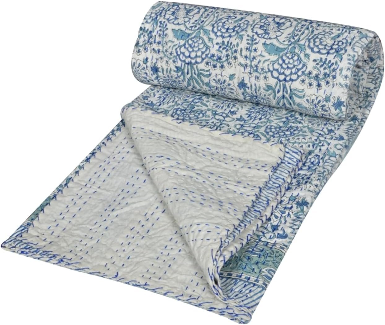 11 reviews for YUVANCRAFTS Indian Hand Block Print Kantha Quilt Cotton Throw Blanket Bedspread Queen Size (White, Twin 90 X 60 Inch)